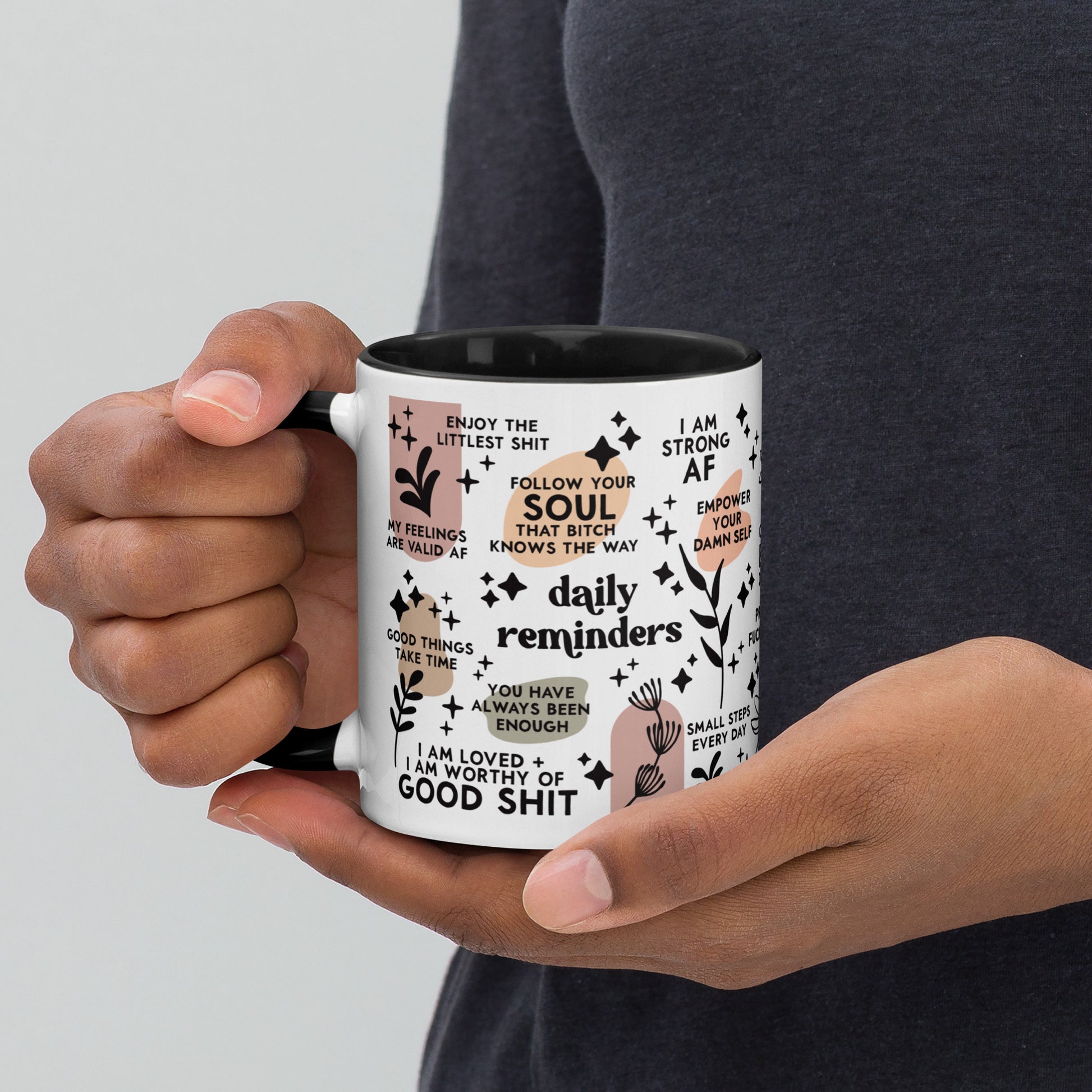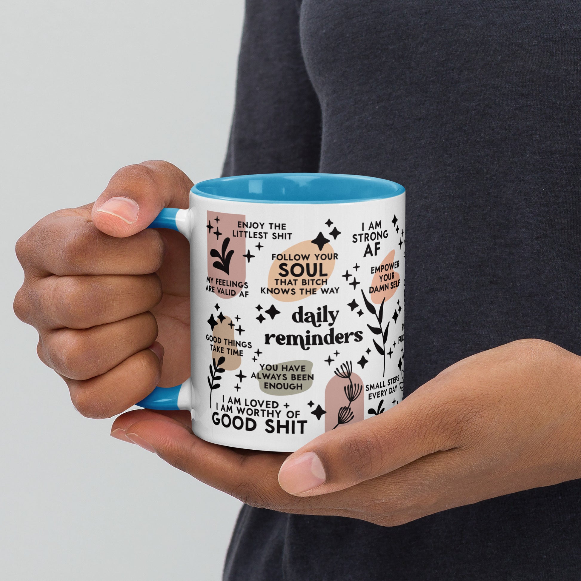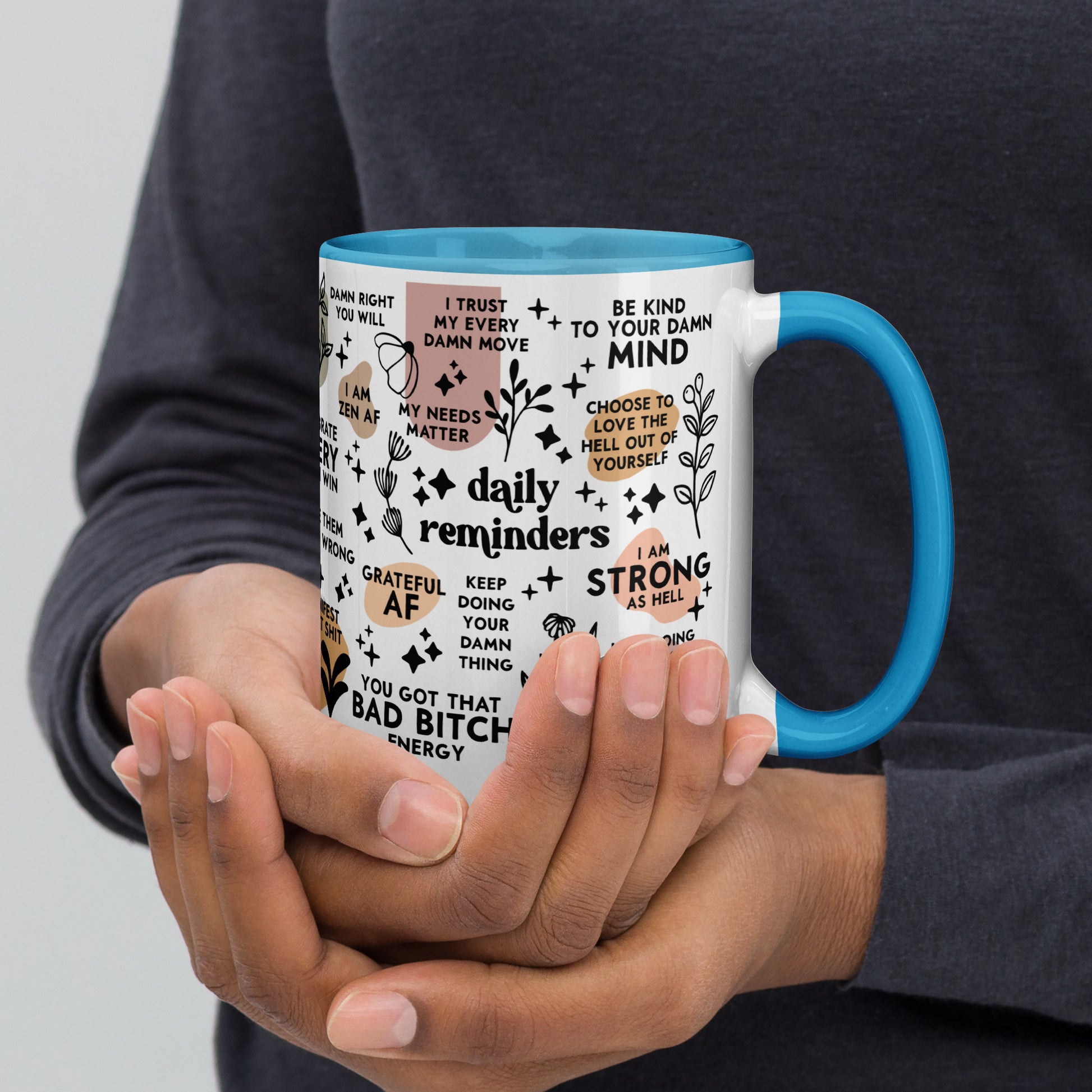Sip your morning coffee out of this Daily Affirmations Mug-Vulgar Version. With a colorful handle and interior to bring cheer to your day, it'll help remind you of the good things in life - with a side of swearing.