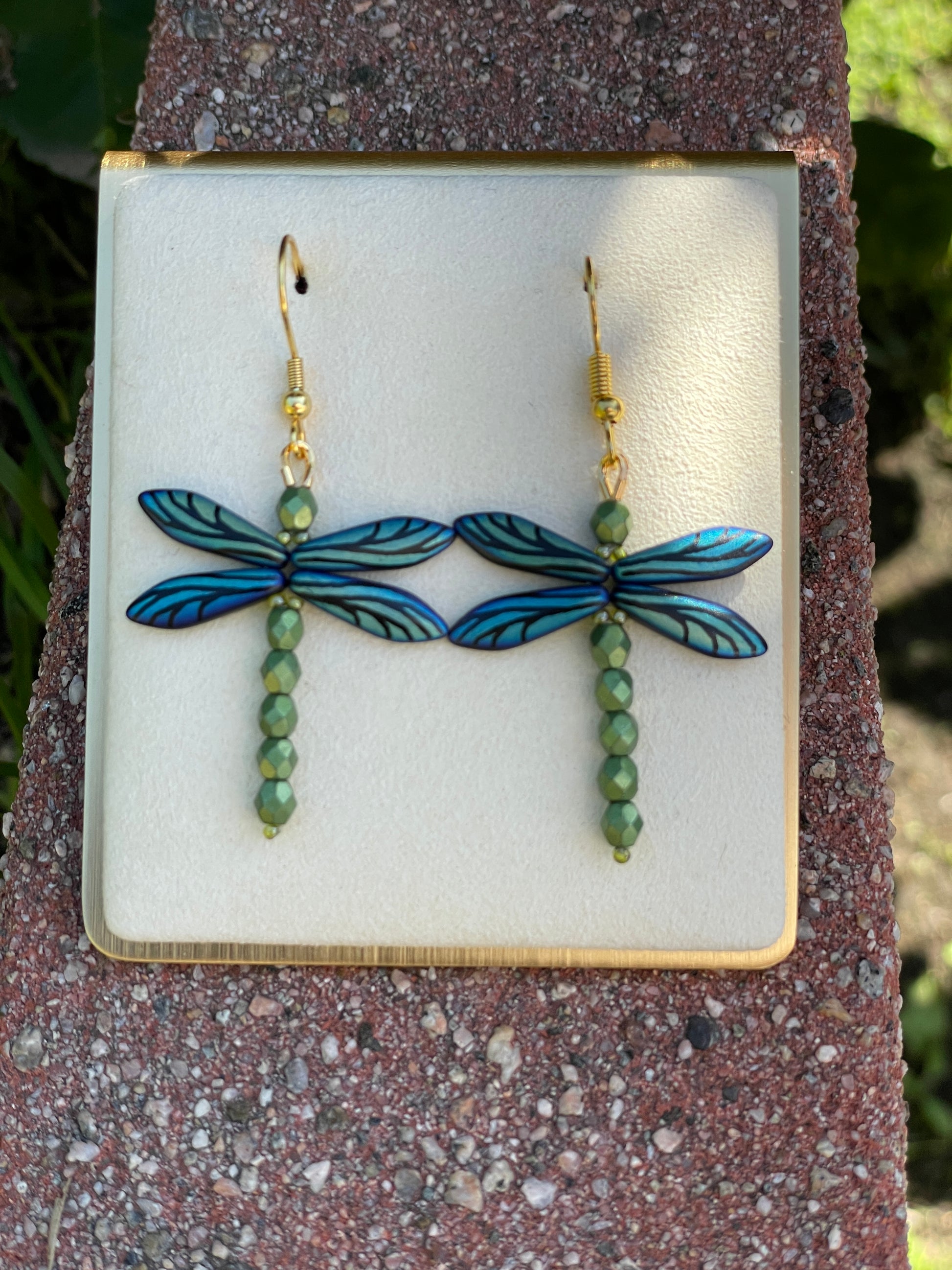 "Flutter in style with these Graceful Dragonfly Earrings. The glass wings shimmer with iridescent beauty, while faceted crystals add a touch of sparkle. And with hypoallergenic ear wires, you can wear these without worry. Fly away with these unique and playful earrings!"