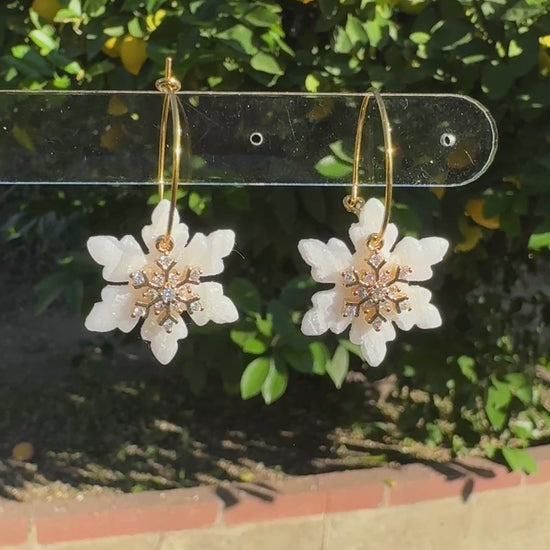 Winterlight Snowflake Hoops — Translucent Polymer Clay Earrings